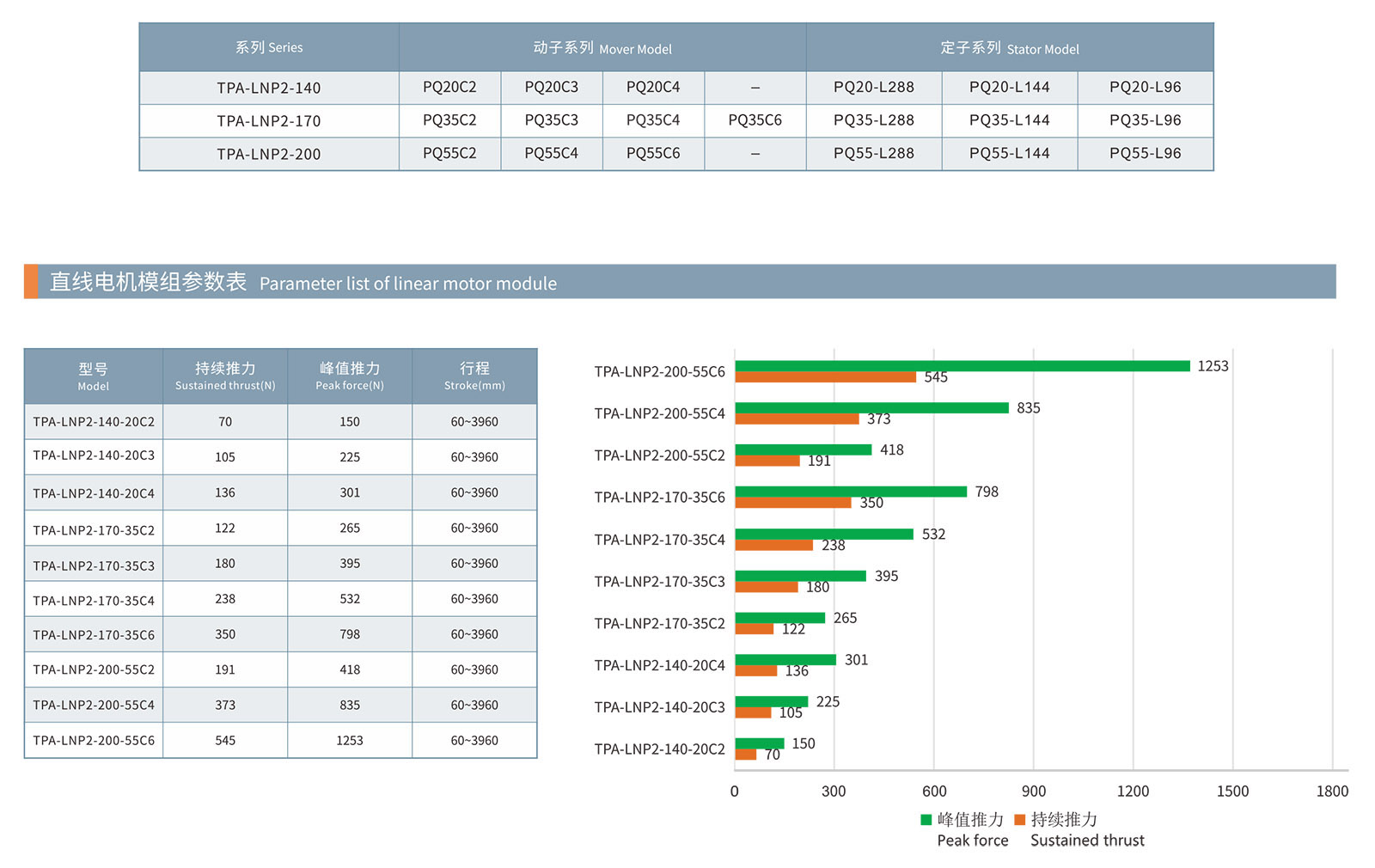 The LNP series direct drive linear motor was independently developed by TPA ROBOT in 2016.  LNP series allows automation equipment manufacturers to use flexible and easy-to-integrate direct drive linear motor to form high-performance, reliable, sensitive, and precise motion actuator stages.