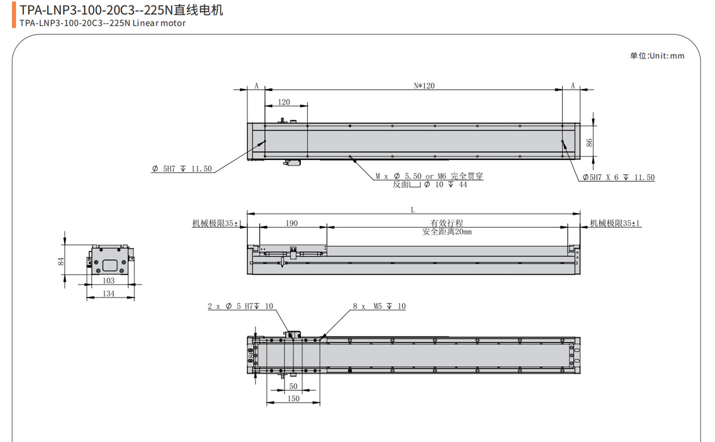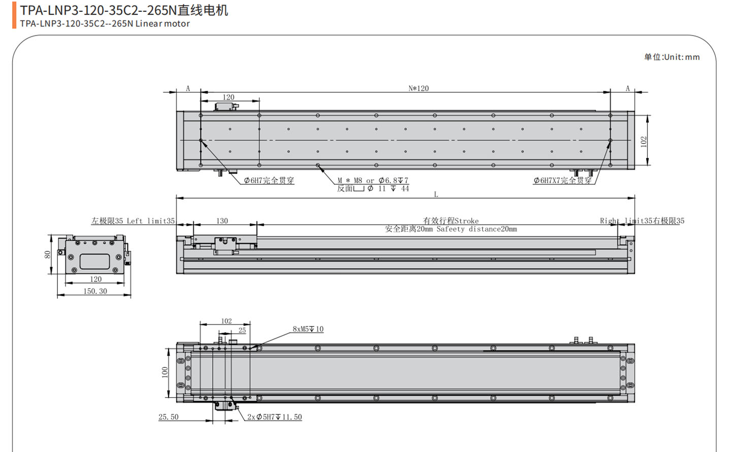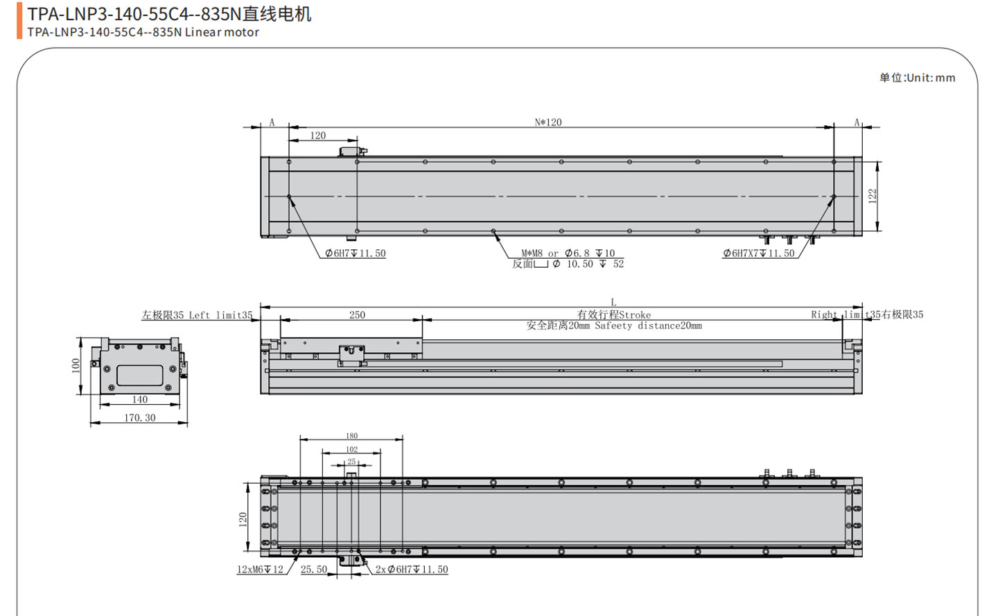 We have optimized the structural design of the LNP2 series linear motor, the rigidity of the motor has been improved, and it can bear a larger load, can be used as a beam.