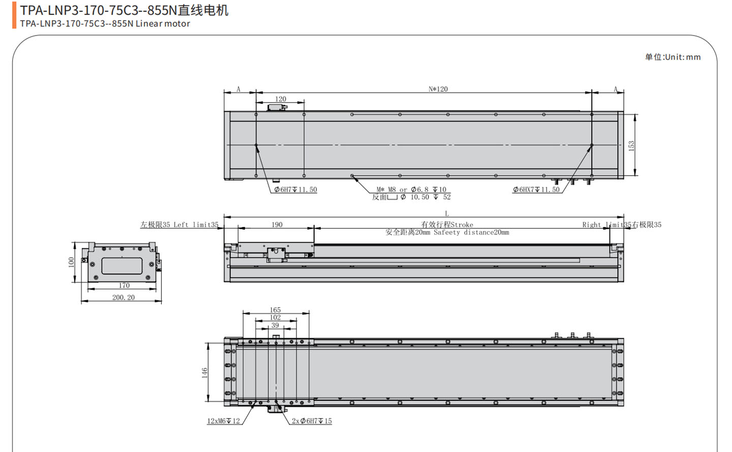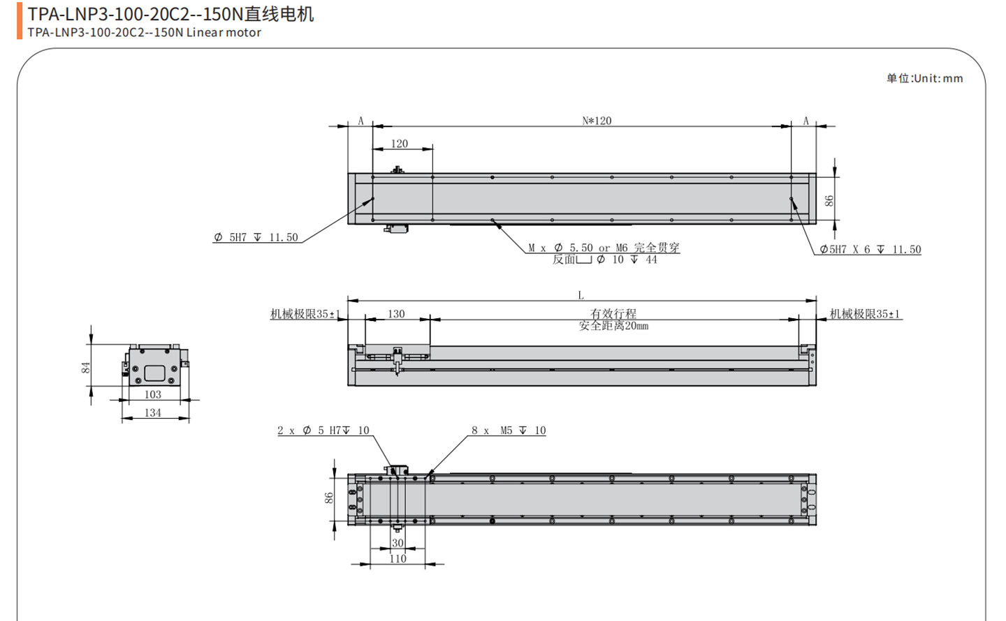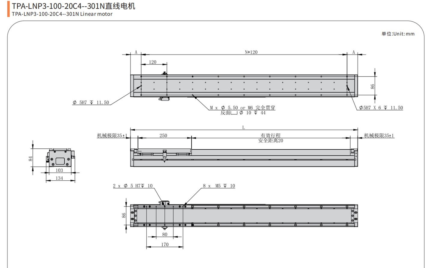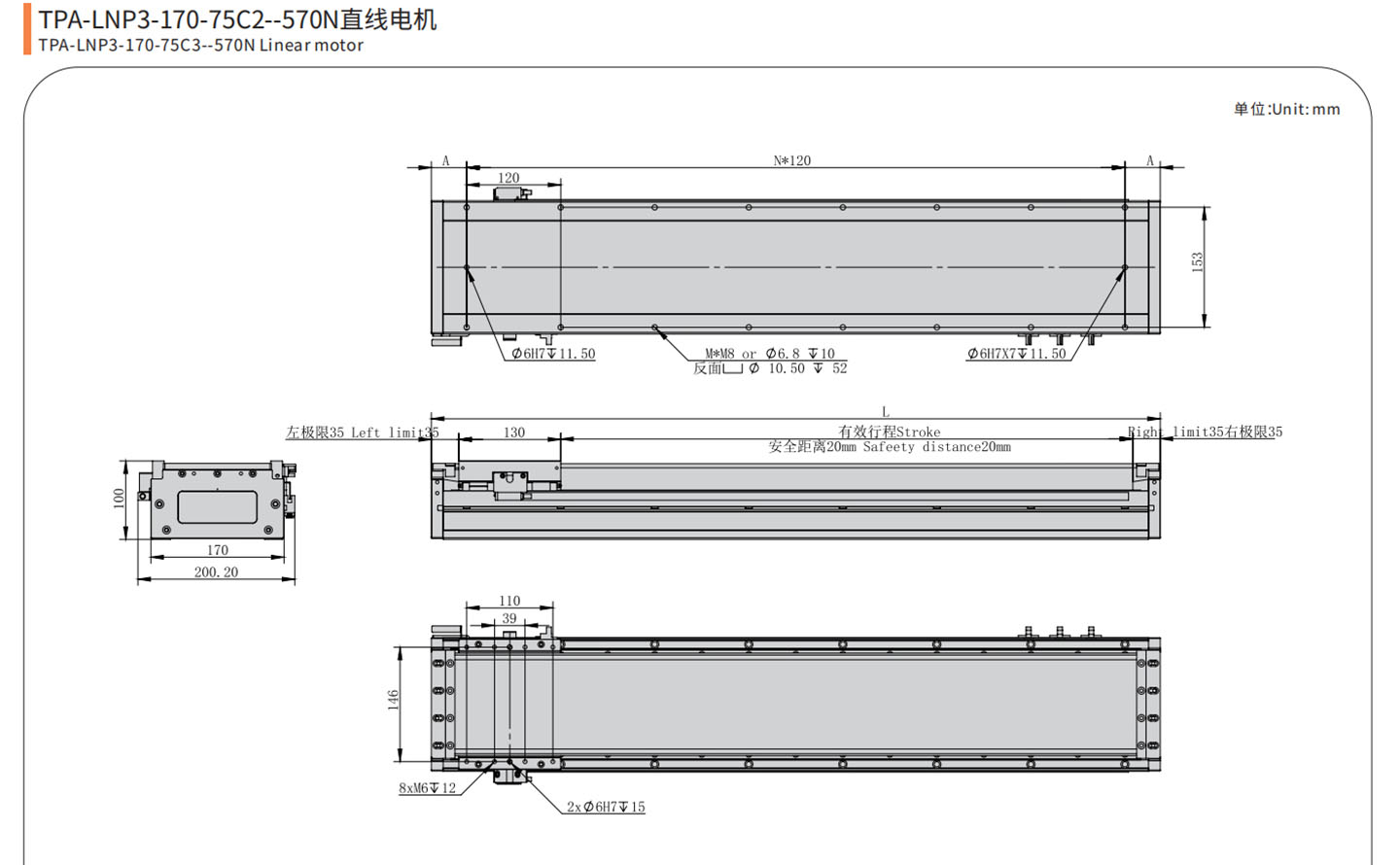 We have optimized the structural design of the LNP2 series linear motor, the rigidity of the motor has been improved, and it can bear a larger load, can be used as a beam.