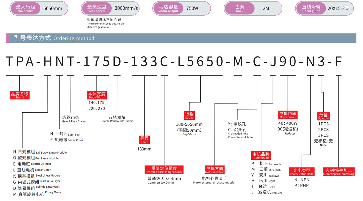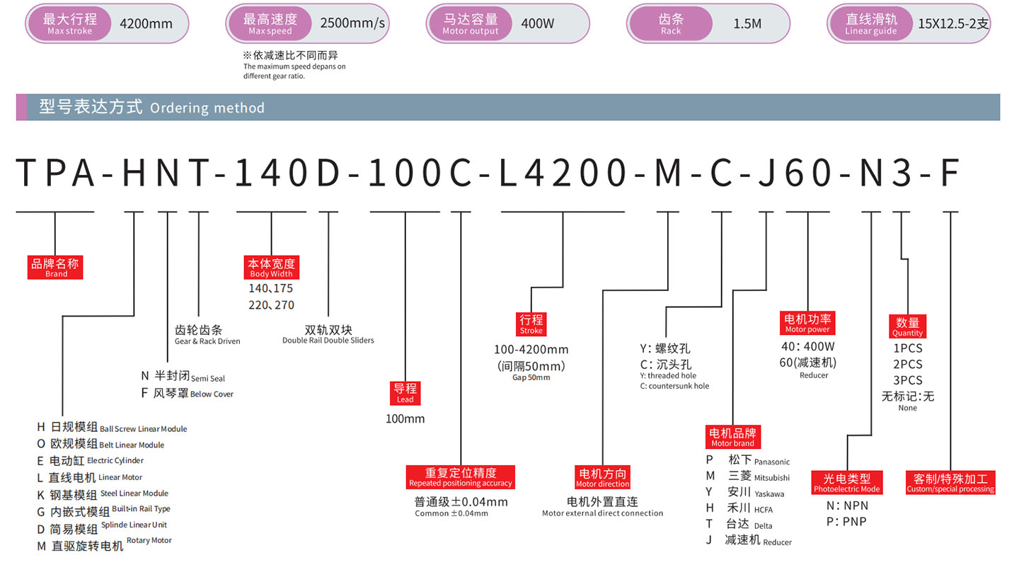 The HNT series rack and pinion driven linear axis from TPA ROBOT are made of hard extruded aluminum profiles and equipped with multiple sliders. Even under high load conditions, it can still maintain high drive stiffness and motion speed.