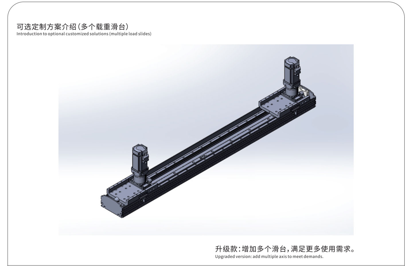 The rack and pinion module is a linear motion device composed of linear guide rails, racks and aluminum extruded profiles connected to the motor, reducer and gears.