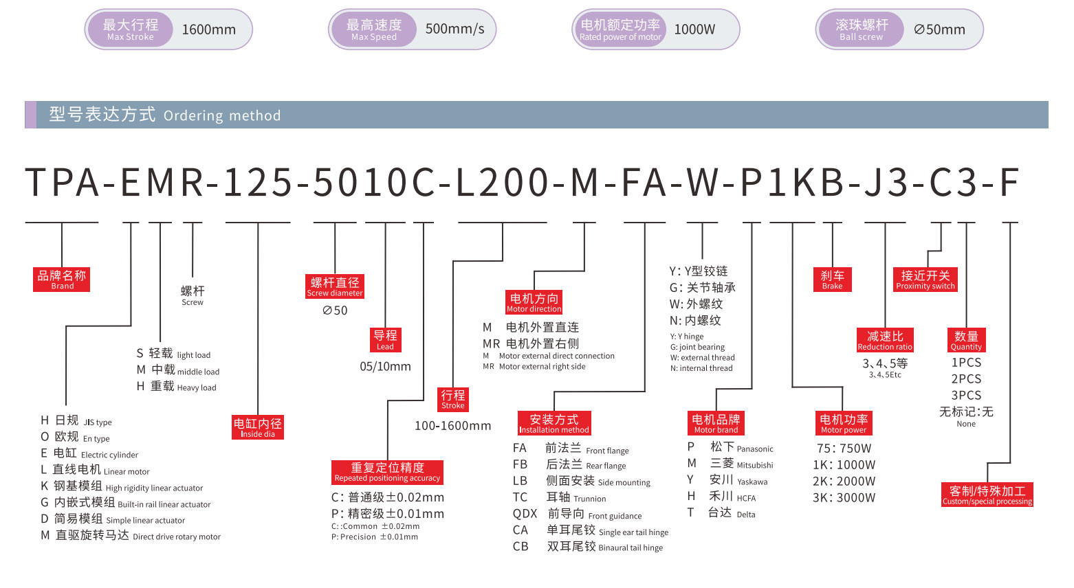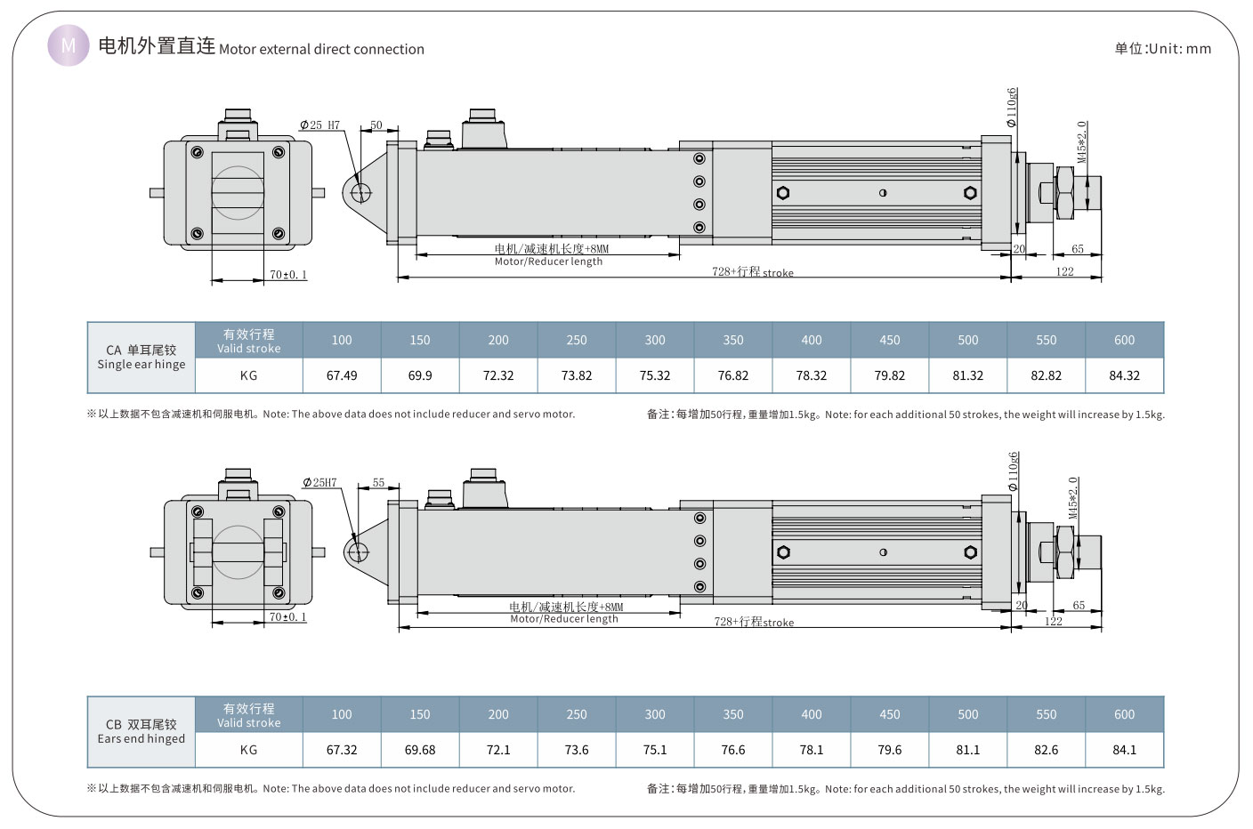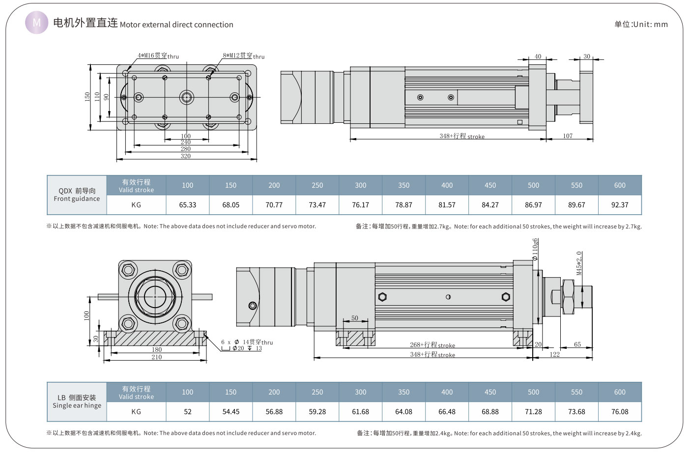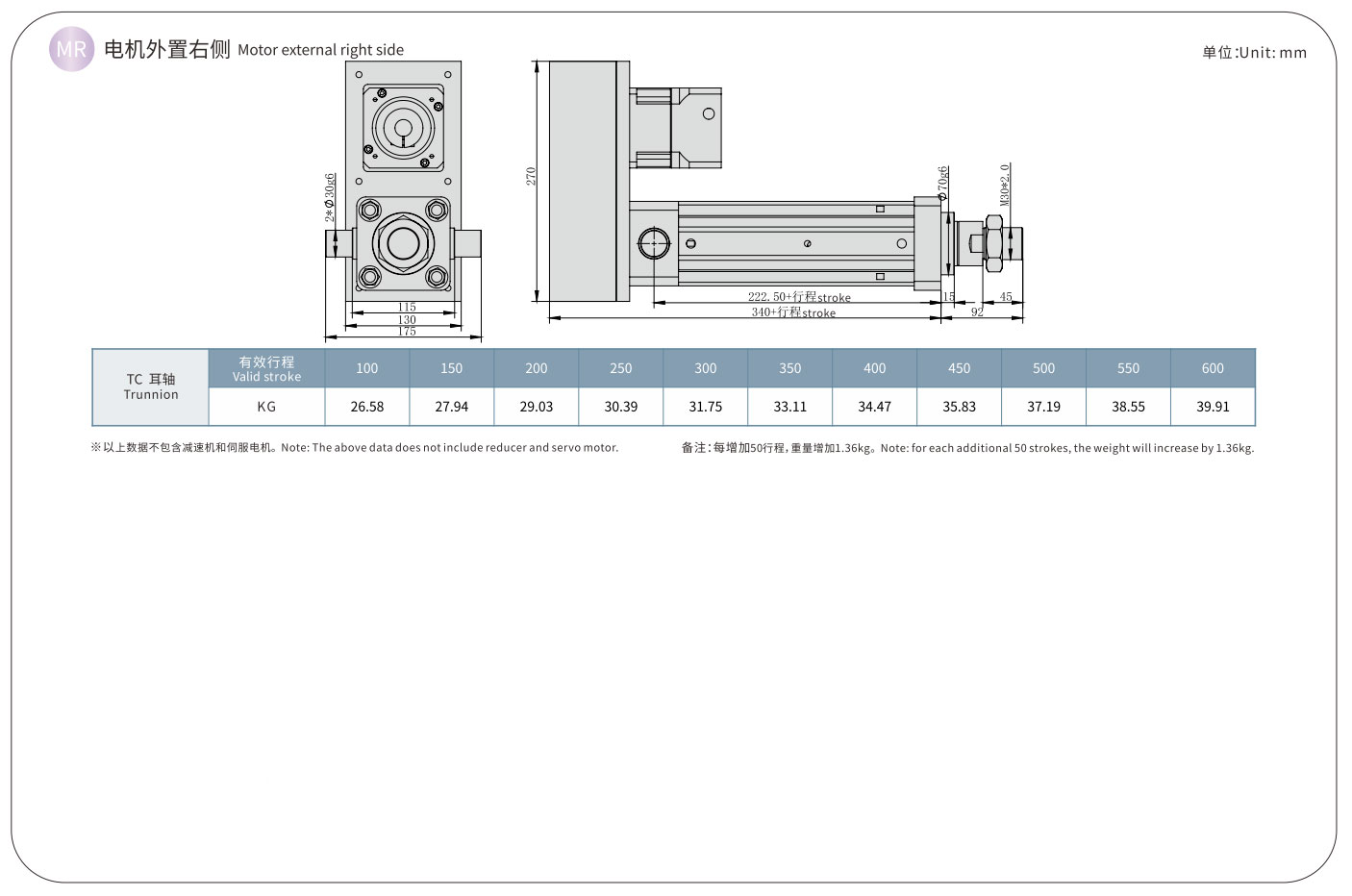 The EMR series electric actuator cylinder provides a thrust of up to 47600N and a stroke of 1600mm. It can also maintain the high precision of the servo motor and ball screw drive, and the repeat positioning accuracy can reach ±0.02mm. Only need to set and modify PLC parameters to complete precise push rod motion control. With its unique structure, the EMR electric actuator can work in complex environments. Its high power density, high transmission efficiency and long service life provide customers with a more economical solution for linear motion of the push rod, and it is easy to maintain. Only regular grease lubrication is required, saving a lot of maintenance costs.
