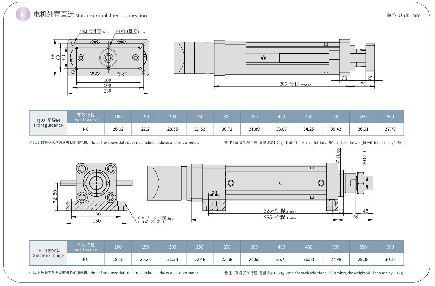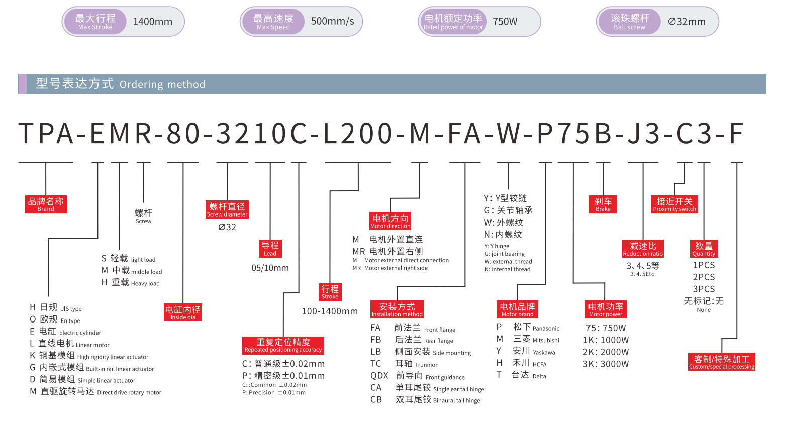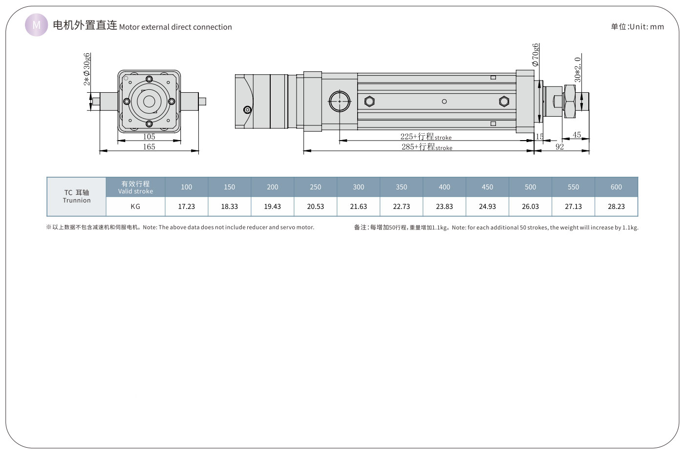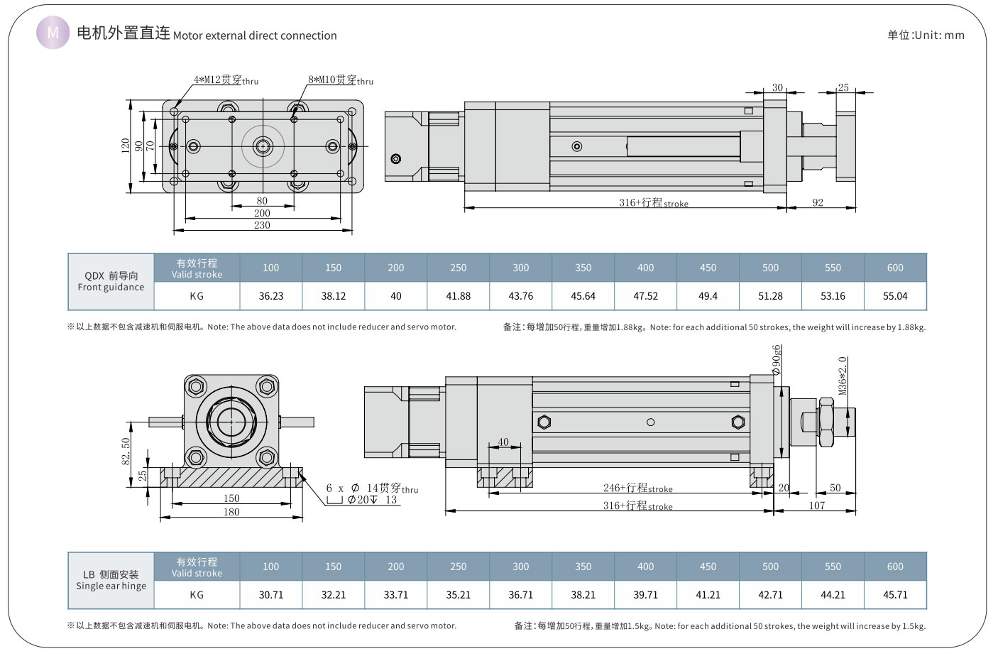 The EMR series electric actuator cylinder provides a thrust of up to 47600N and a stroke of 1600mm. It can also maintain the high precision of the servo motor and ball screw drive, and the repeat positioning accuracy can reach ±0.02mm. Only need to set and modify PLC parameters to complete precise push rod motion control. With its unique structure, the EMR electric actuator can work in complex environments. Its high power density, high transmission efficiency and long service life provide customers with a more economical solution for linear motion of the push rod, and it is easy to maintain. Only regular grease lubrication is required, saving a lot of maintenance costs.