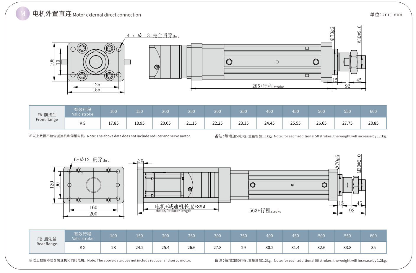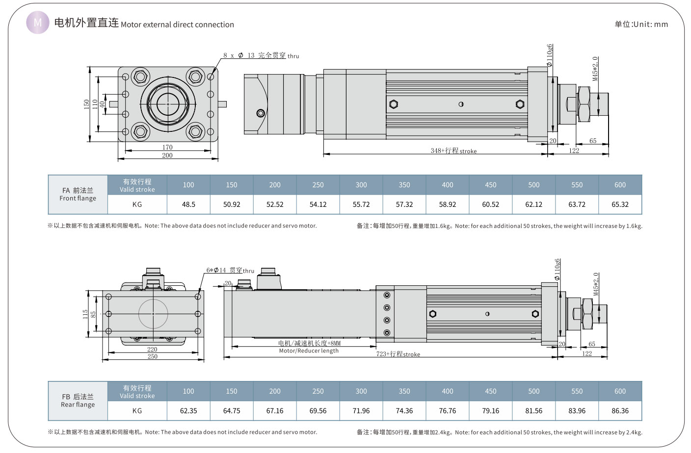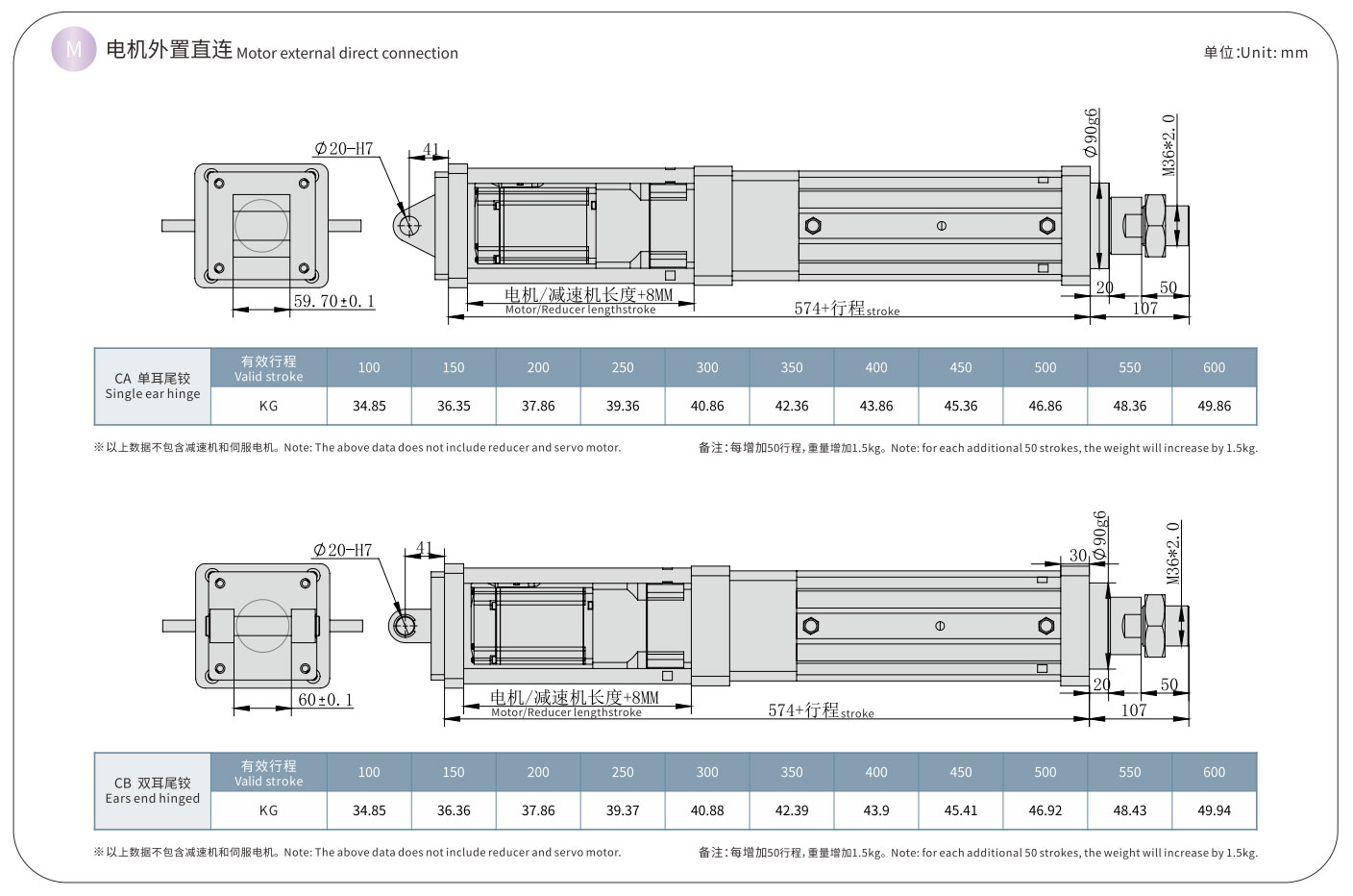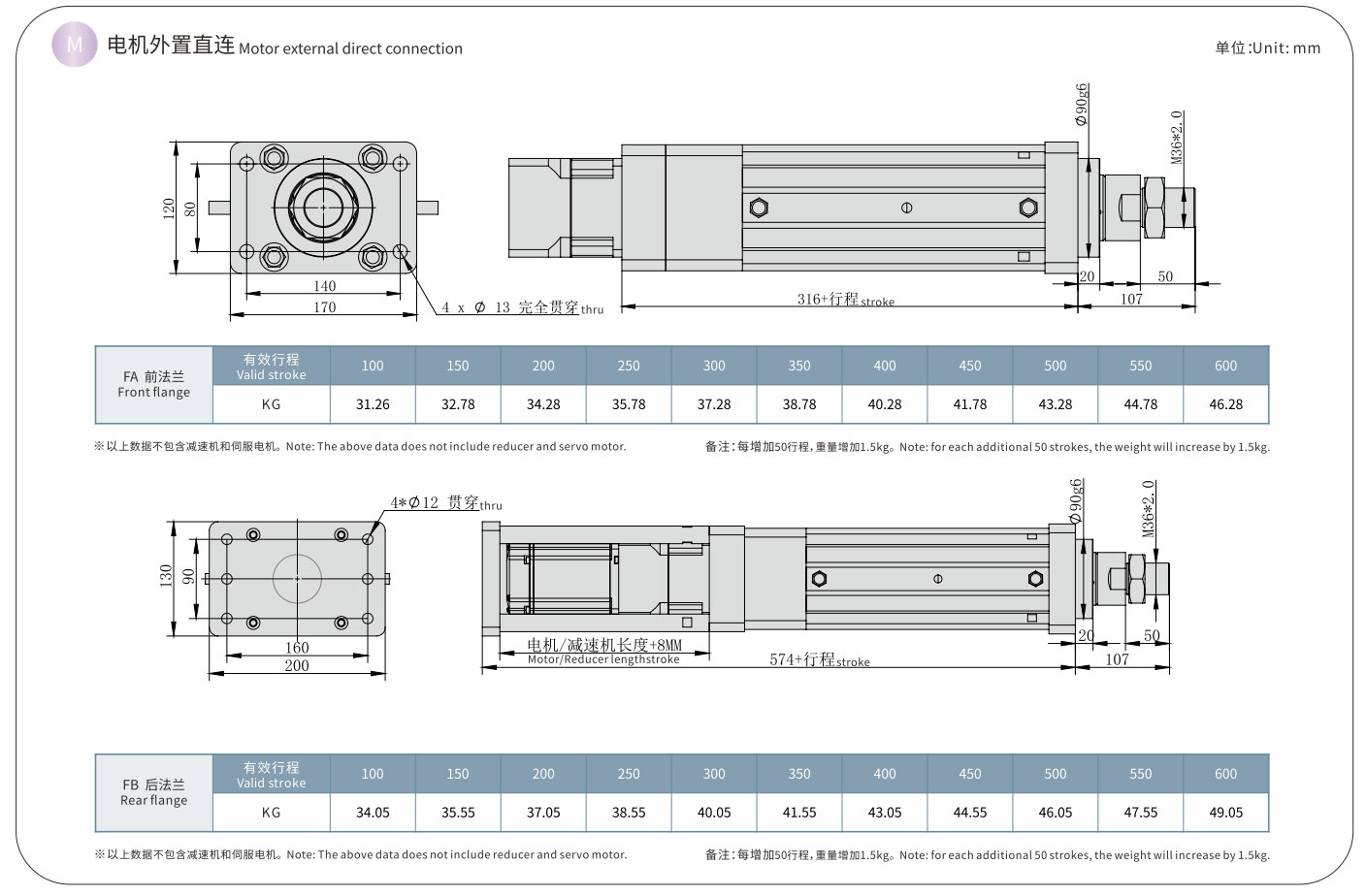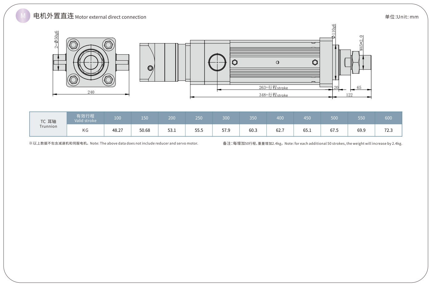 The EMR series electric actuator cylinder provides a thrust of up to 47600N and a stroke of 1600mm. It can also maintain the high precision of the servo motor and ball screw drive, and the repeat positioning accuracy can reach ±0.02mm. Only need to set and modify PLC parameters to complete precise push rod motion control. With its unique structure, the EMR electric actuator can work in complex environments. Its high power density, high transmission efficiency and long service life provide customers with a more economical solution for linear motion of the push rod, and it is easy to maintain. Only regular grease lubrication is required, saving a lot of maintenance costs.