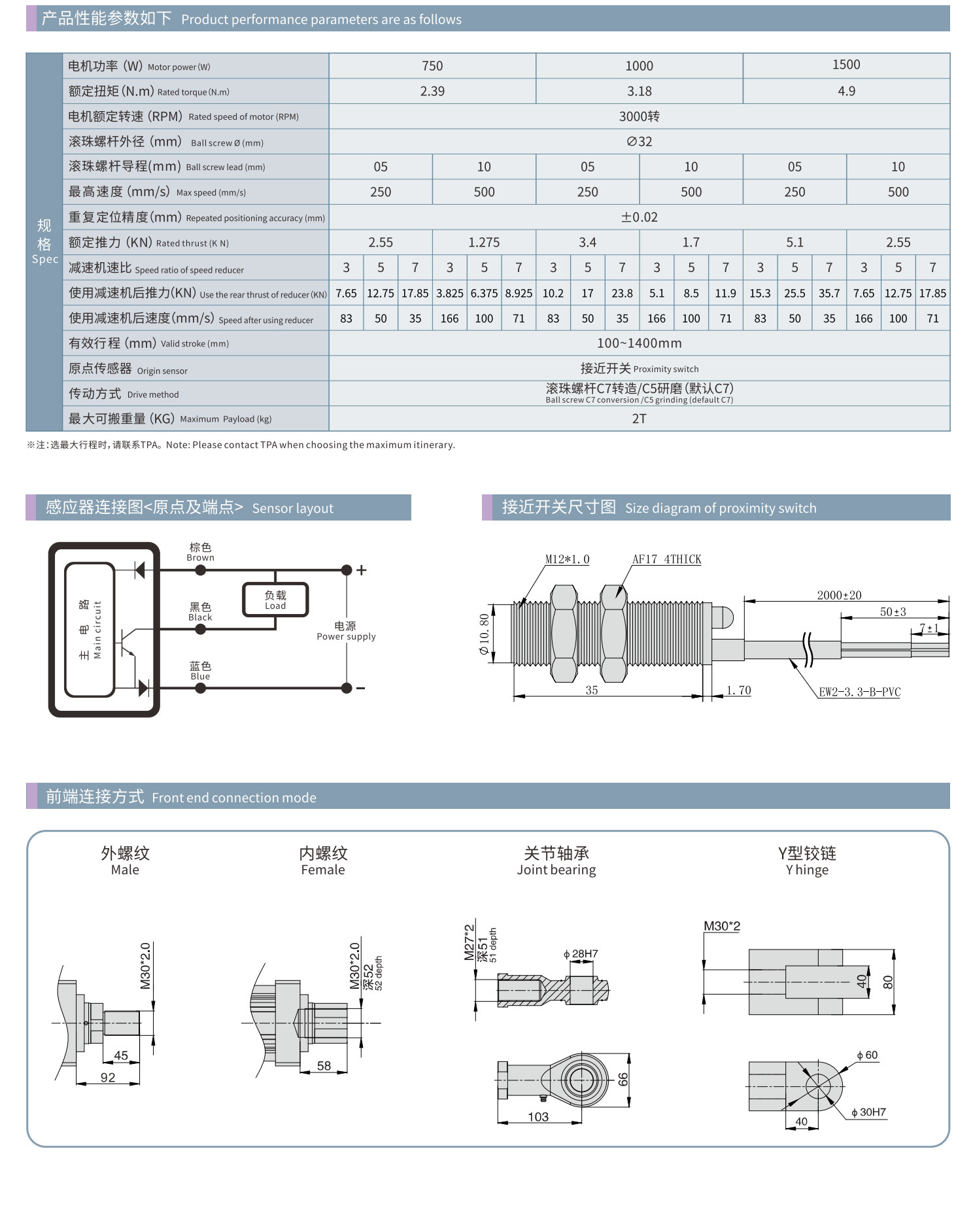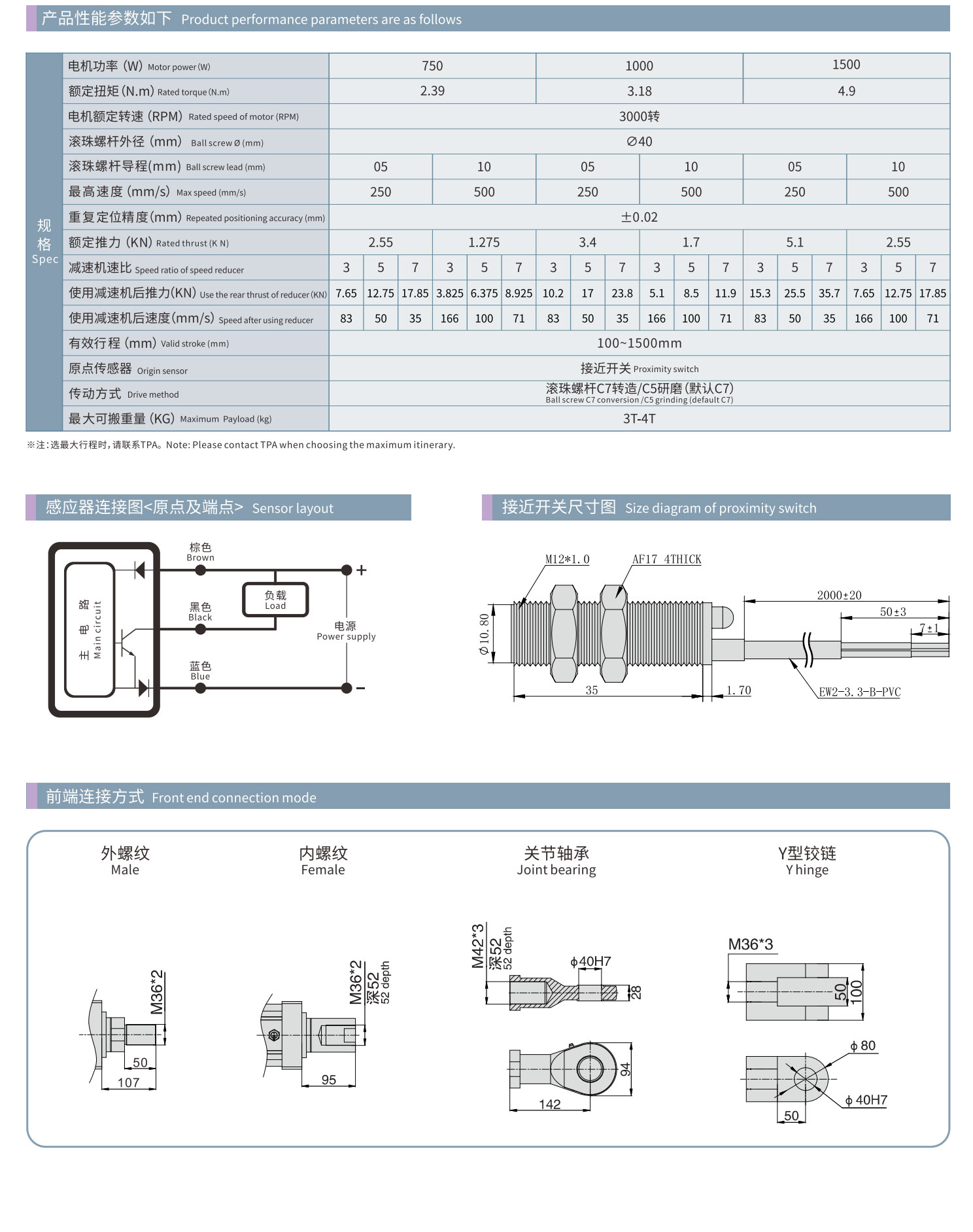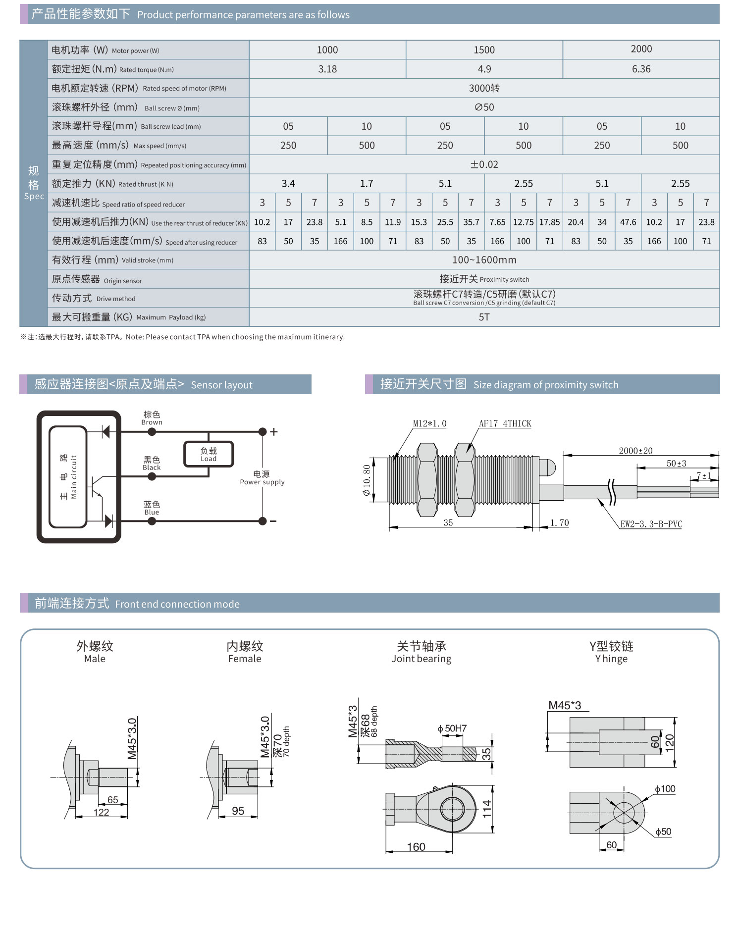 EMR series electric cylinder adopts roller screw drive inside, the structure of the planetary roller screw is similar to that of the ball screw, the difference is that the load transmission element of the planetary ball screw is a threaded ball instead of a ball, so there are many threads to support the load, thereby greatly improving the load capacity.