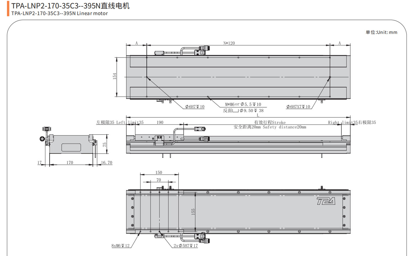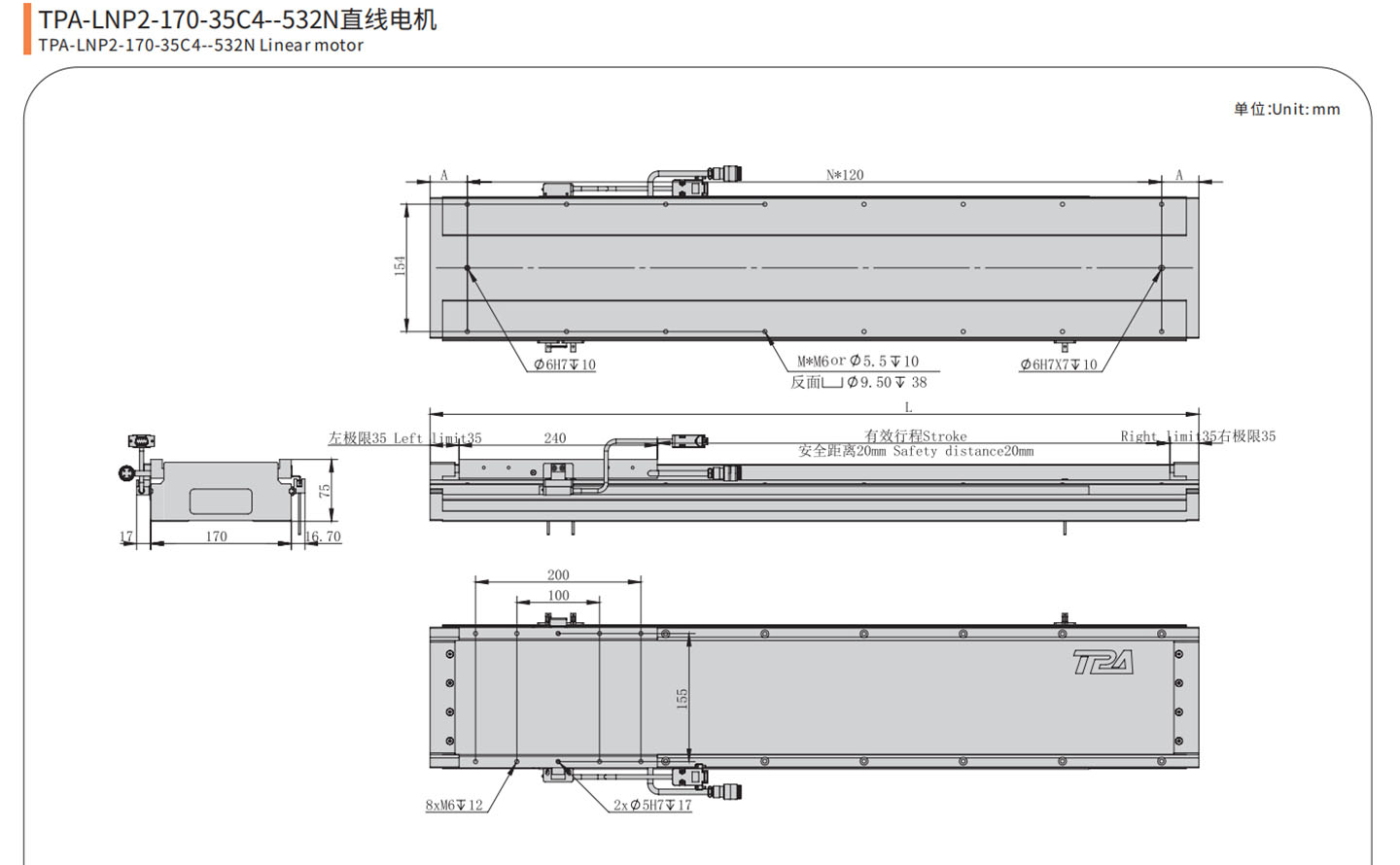 We have optimized the structural design of the LNP2 series linear motor, the rigidity of the motor has been improved, and it can bear a larger load, can be used as a beam.