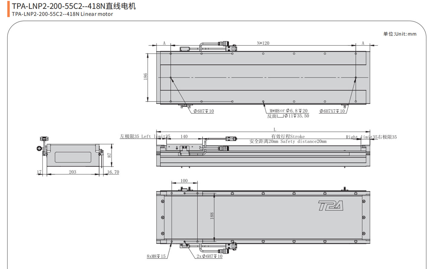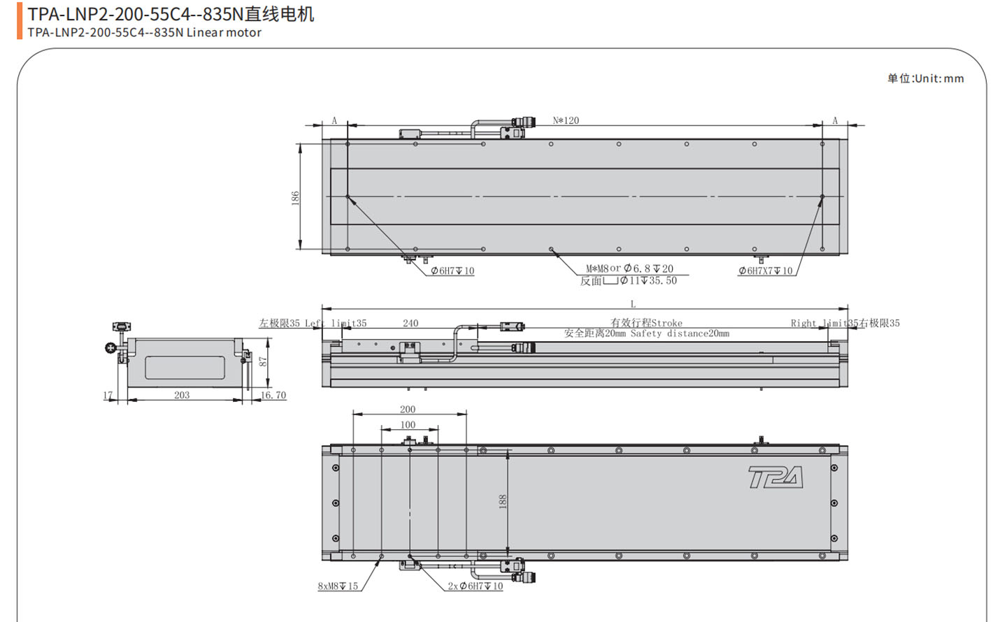 The LNP series direct drive linear motor was independently developed by TPA ROBOT in 2016. LNP series allows automation equipment manufacturers to use flexible and easy-to-integrate direct drive linear motor to form high-performance, reliable, sensitive, and precise motion actuator stages.
