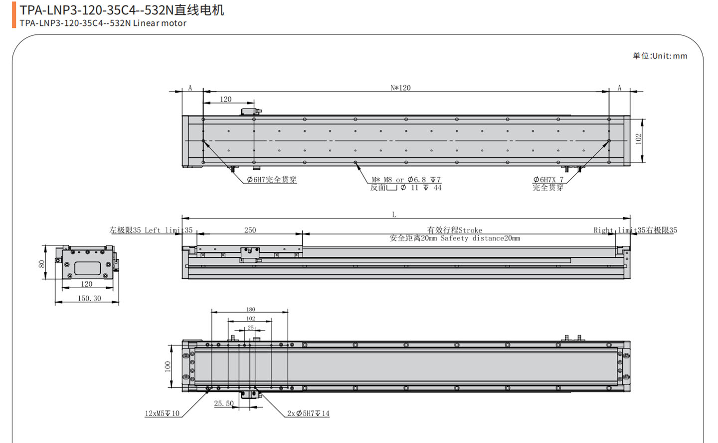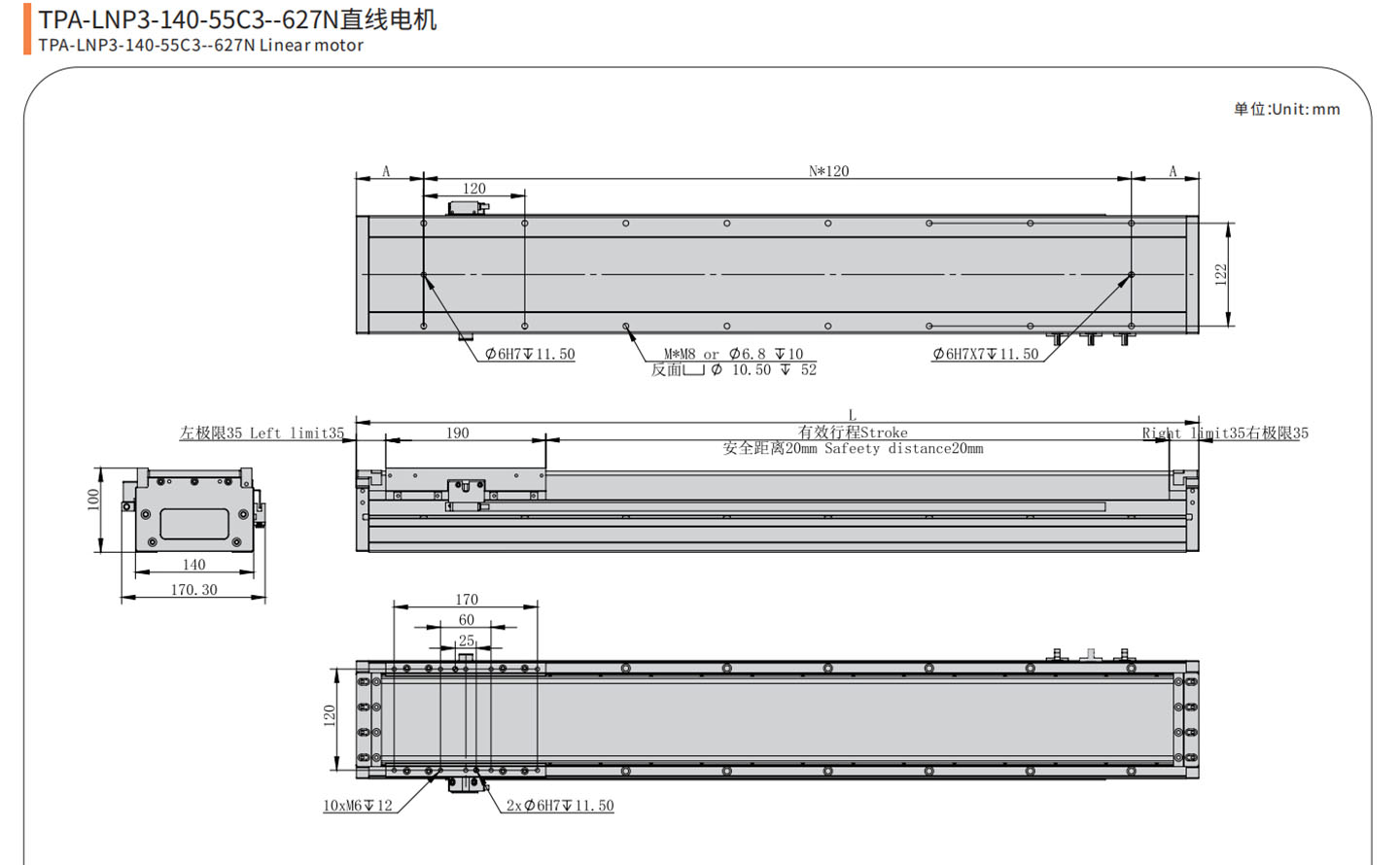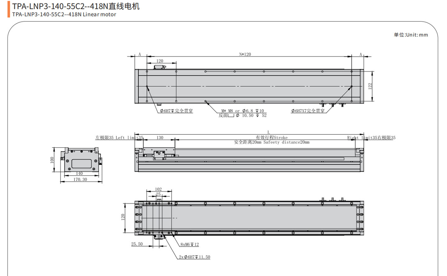 We have optimized the structural design of the LNP2 series linear motor, the rigidity of the motor has been improved, and it can bear a larger load, can be used as a beam.